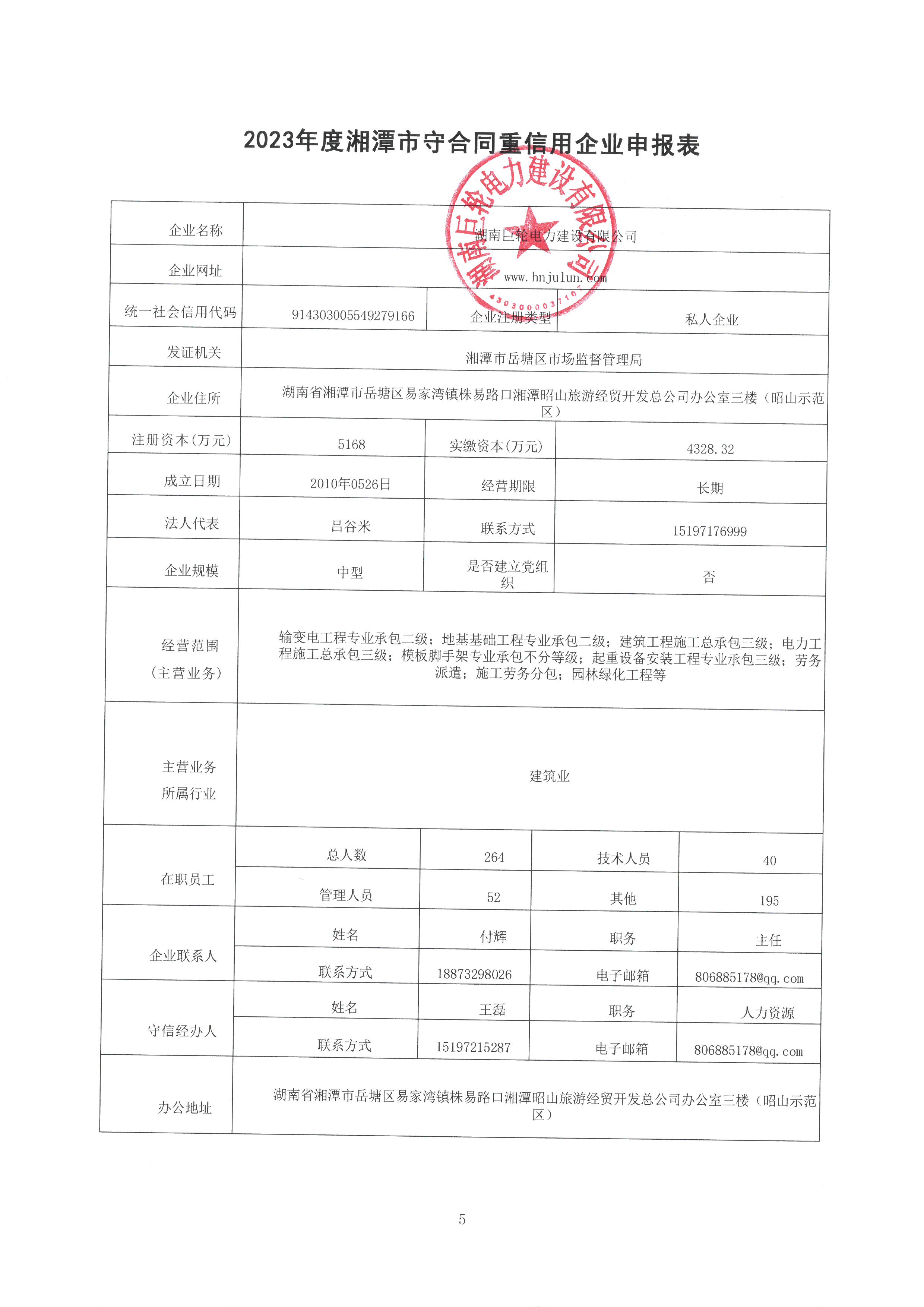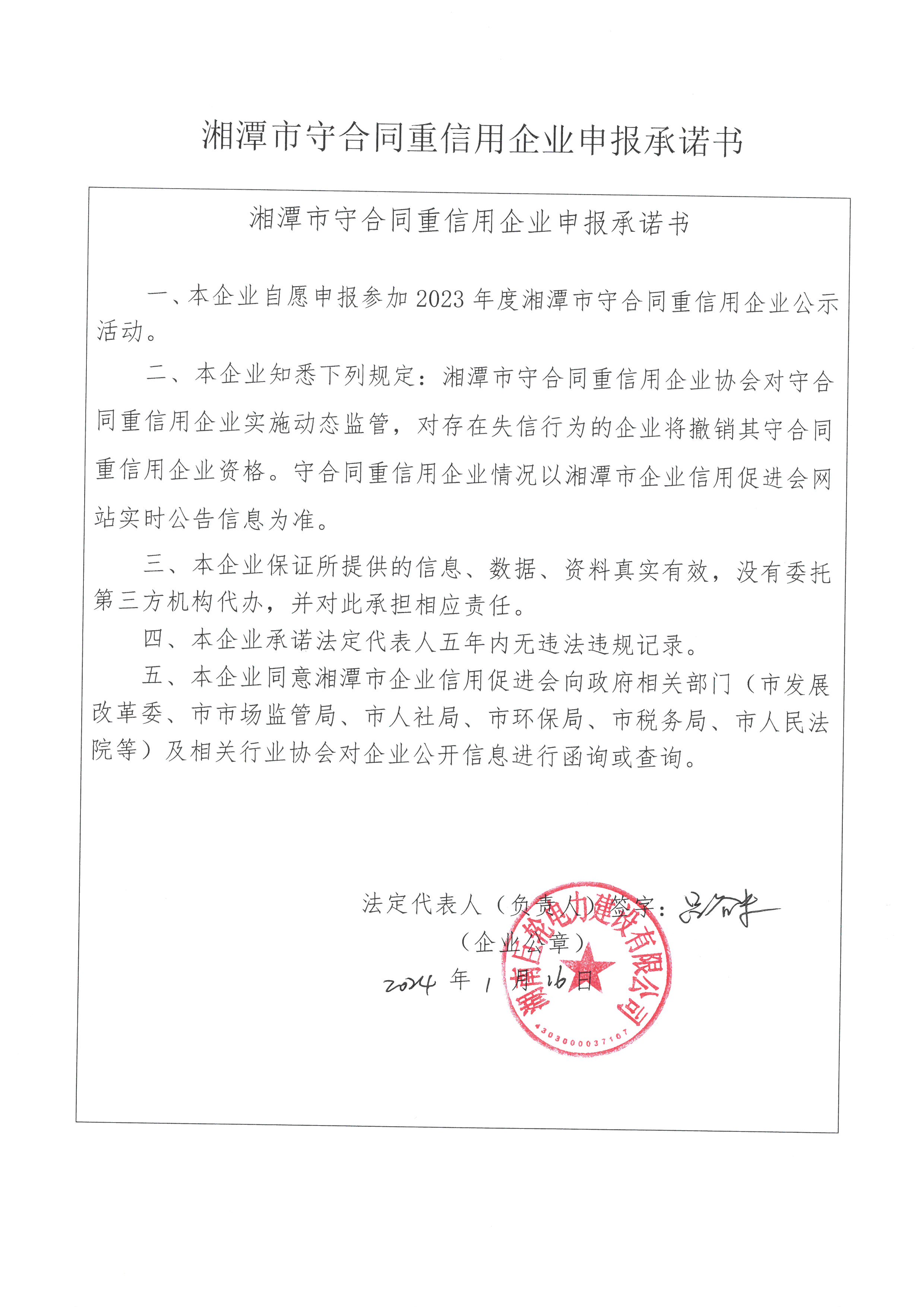 本企業(yè)根據(jù)《湘潭市守合同重信用企業(yè)申報規(guī)定》等編制 2023 年度企業(yè)信用報告書,并保證本報告書內(nèi)容真實、準(zhǔn)確、完整。