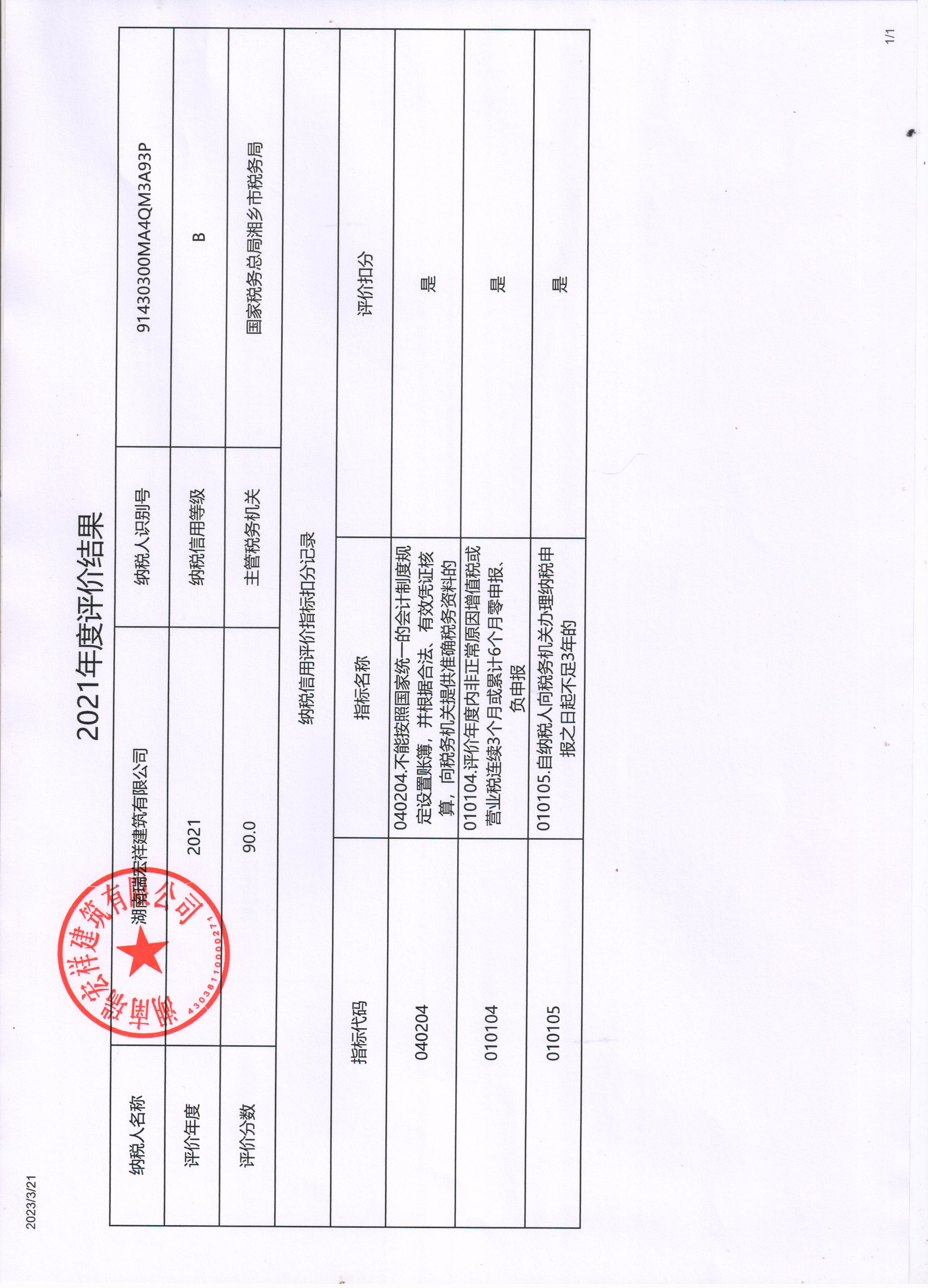 企業(yè)納稅信用等級報告: