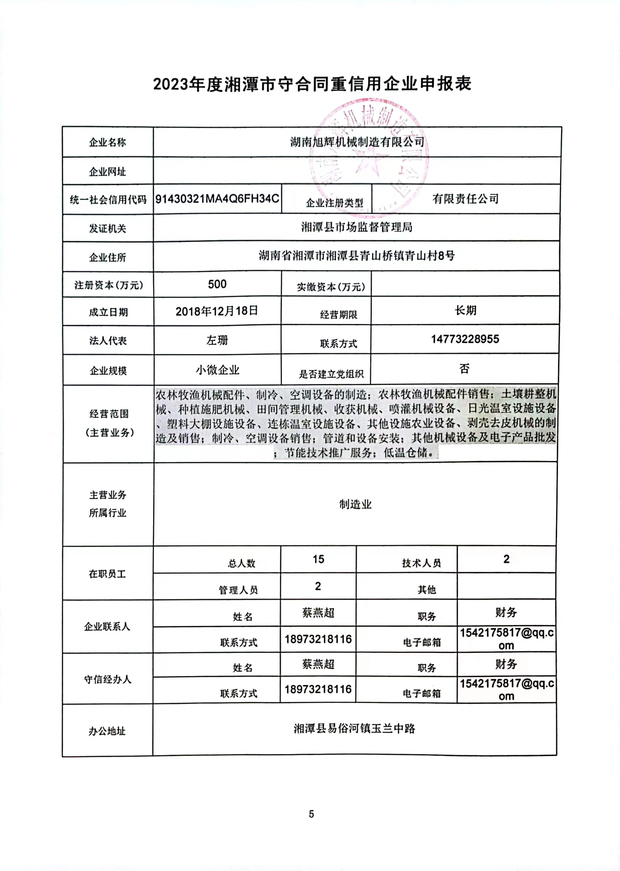 本企業(yè)根據(jù)《湘潭市守合同重信用企業(yè)申報規(guī)定》等編制 2023 年度企業(yè)信用報告書,并保證本報告書內(nèi)容真實(shí)、準(zhǔn)確、完整。
