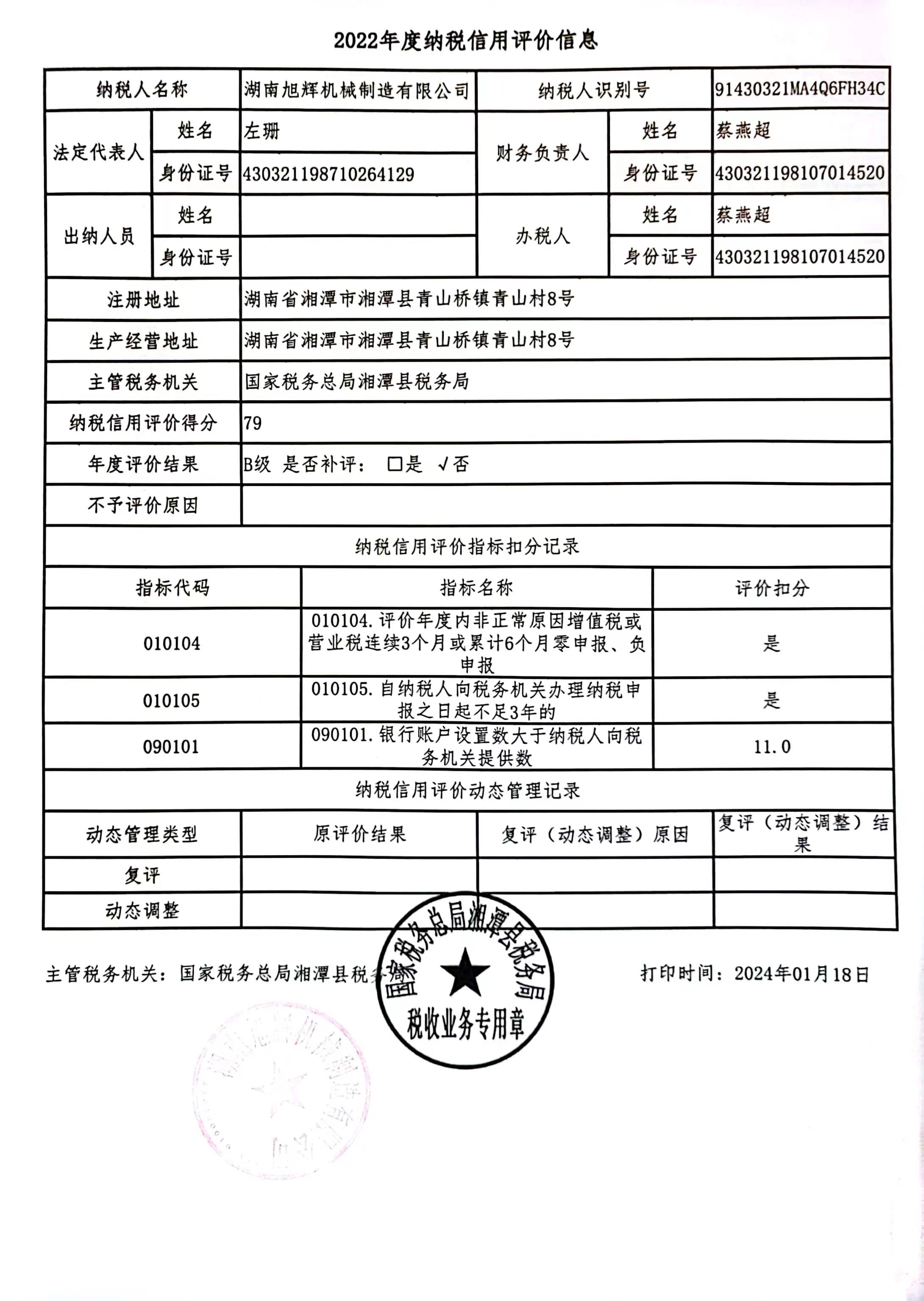 企業(yè)納稅信用等級報告: