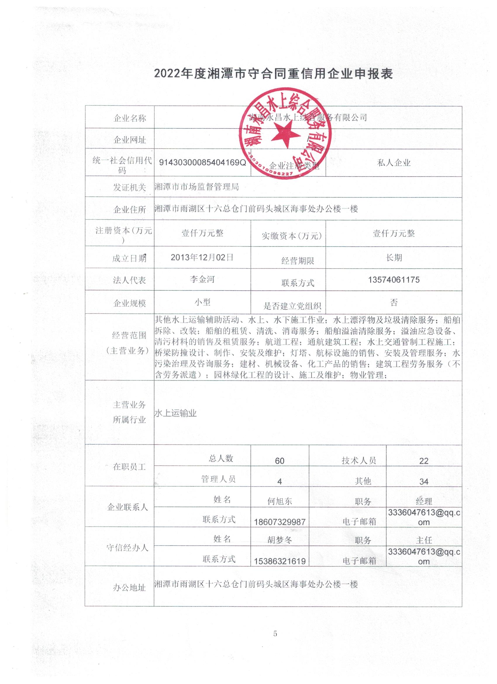 本企業(yè)根據(jù)《湘潭市守合同重信用企業(yè)申報規(guī)定》等編制 2022 年度企業(yè)信用報告書,并保證本報告書內容真實、準確、完整。