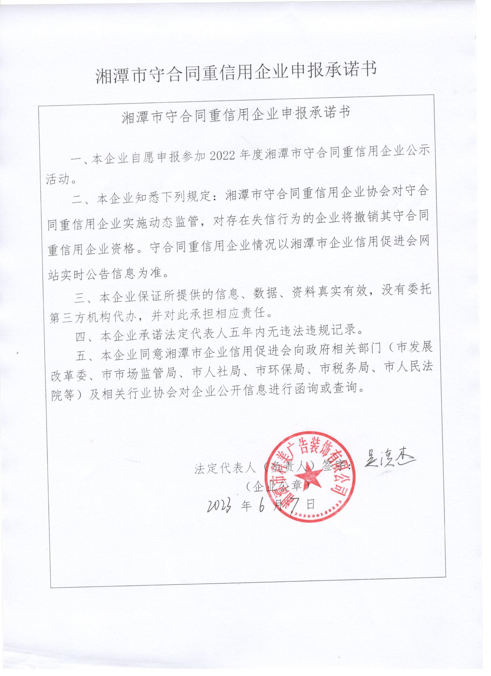 本企業(yè)根據(jù)《湘潭市守合同重信用企業(yè)申報規(guī)定》等編制 2022 年度企業(yè)信用報告書,并保證本報告書內(nèi)容真實(shí)、準(zhǔn)確、完整。