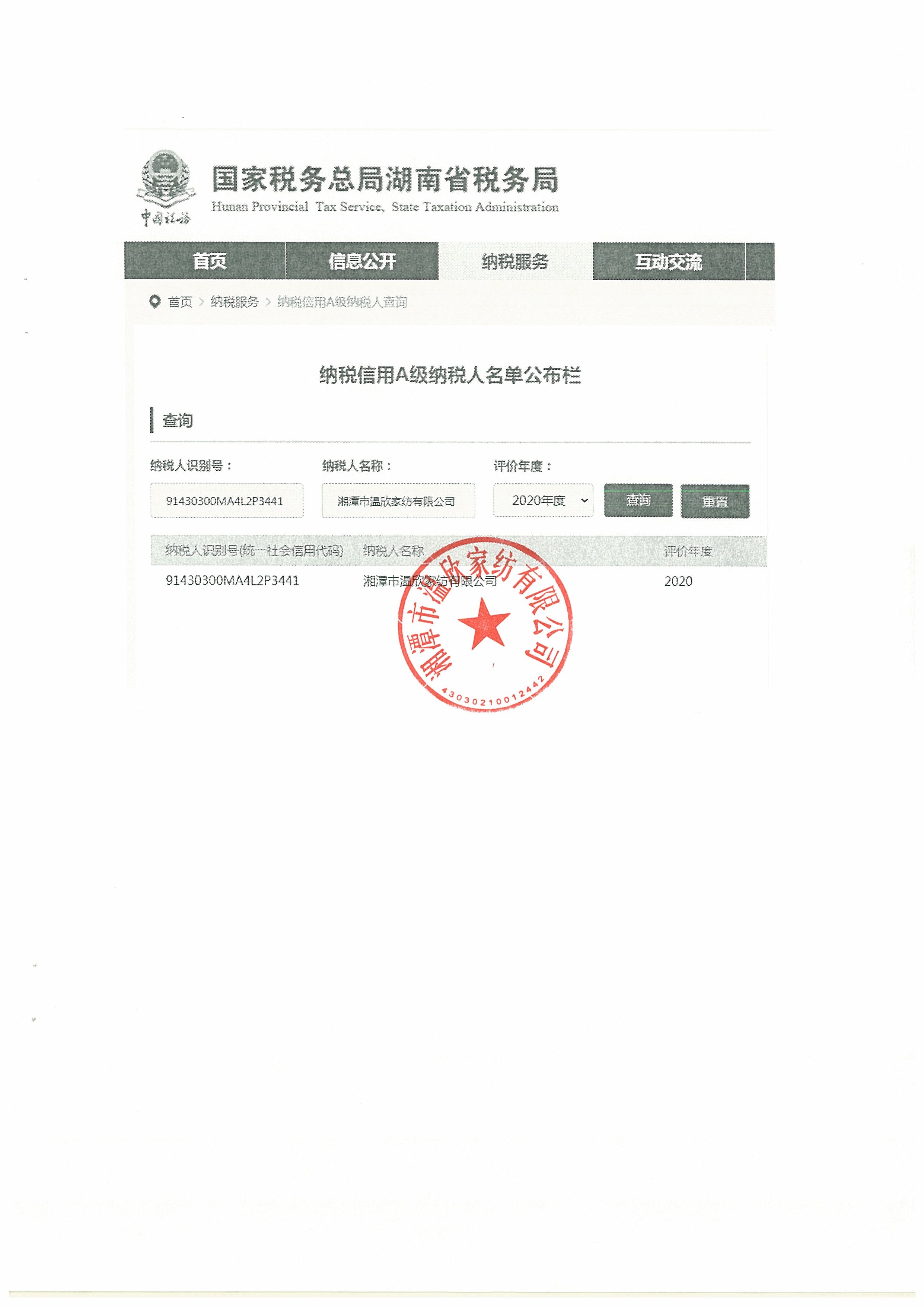 企業(yè)納稅信用等級報告: