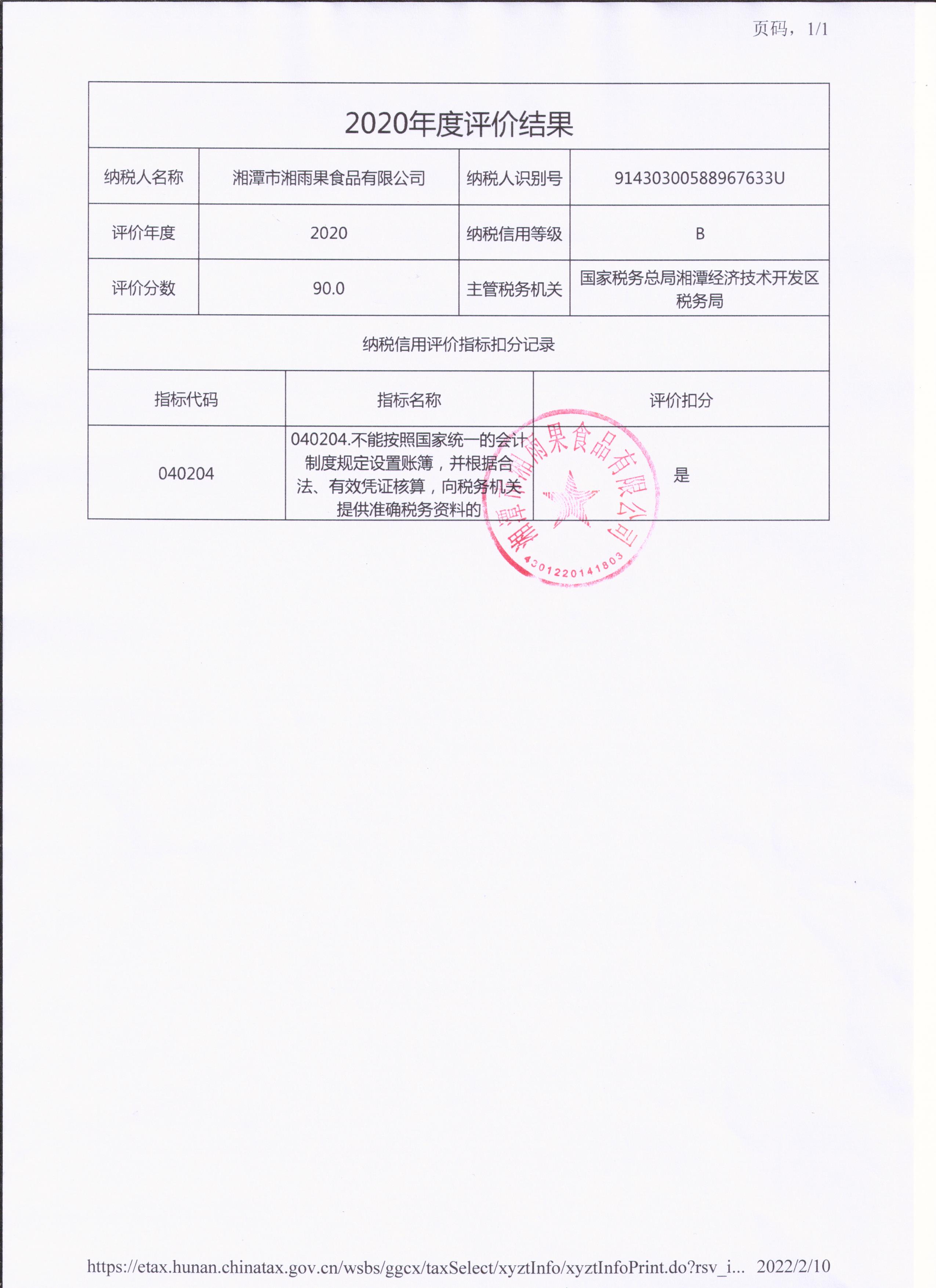 企業(yè)納稅信用等級報告:
