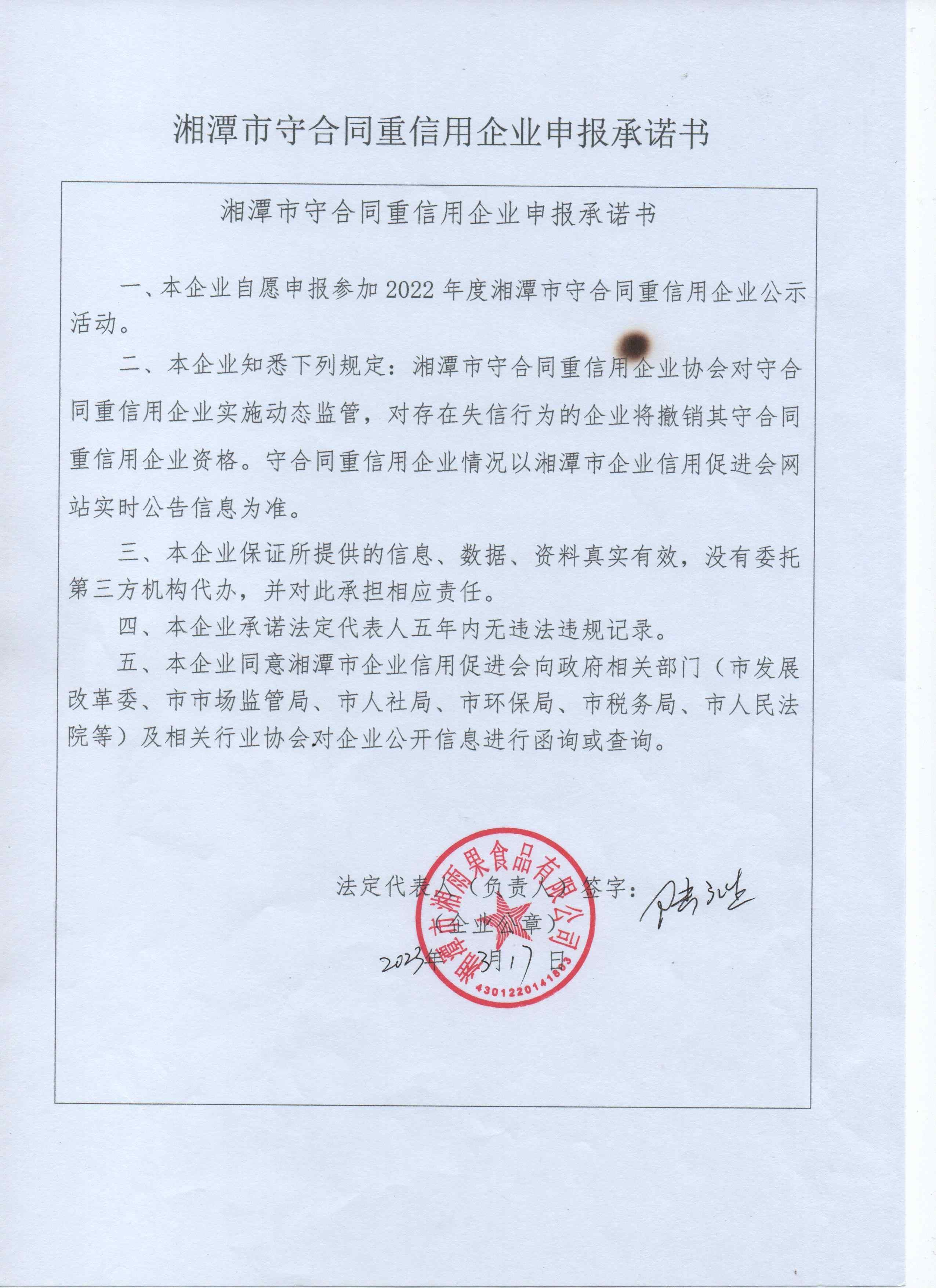 本企業(yè)根據(jù)《湘潭市守合同重信用企業(yè)申報規(guī)定》等編制 2022 年度企業(yè)信用報告書,并保證本報告書內容真實、準確、完整。